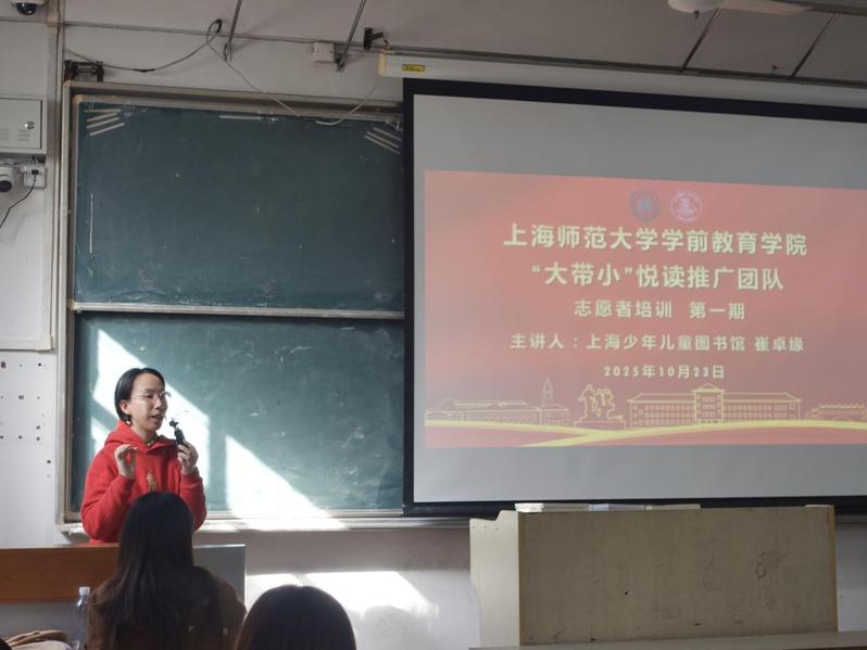 为提升“大带小”悦读志愿者的专业素养与实践能力,助力志愿服务高效落地,为后续和幼儿园开拓党建联建奠定基础,10月23日上午,必威唯一官方网站举办“大带小”悦读志愿者培训,特邀上海少年儿童图书馆馆员崔卓缘老师担任主讲人,51名悦读志愿者参与培训。