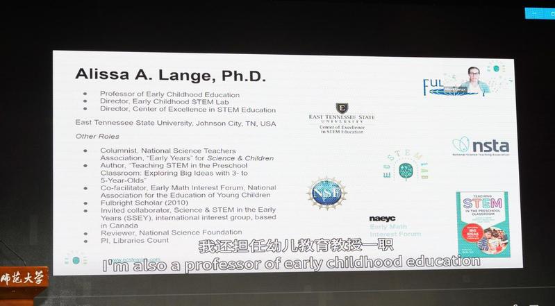 美国东田纳西州立大学早期STEM研究中心主任艾莉莎·兰格(Alissa Lange)博士通过视频发表致辞。她从全球视野出发,阐述早期STEM经历对人的深远影响:“研究表明,幼儿时期的经历以及儿童在幼儿园初期(约5至6岁)的表现,不仅对他们在STEM领域未来的教育发展轨迹至关重要,对阅读等其他领域也有巨大影响。”她期待与中方相关高校深化合作,共同提升教育工作者的能力,“让所有儿童都能获得平等的STEM学习机会”。